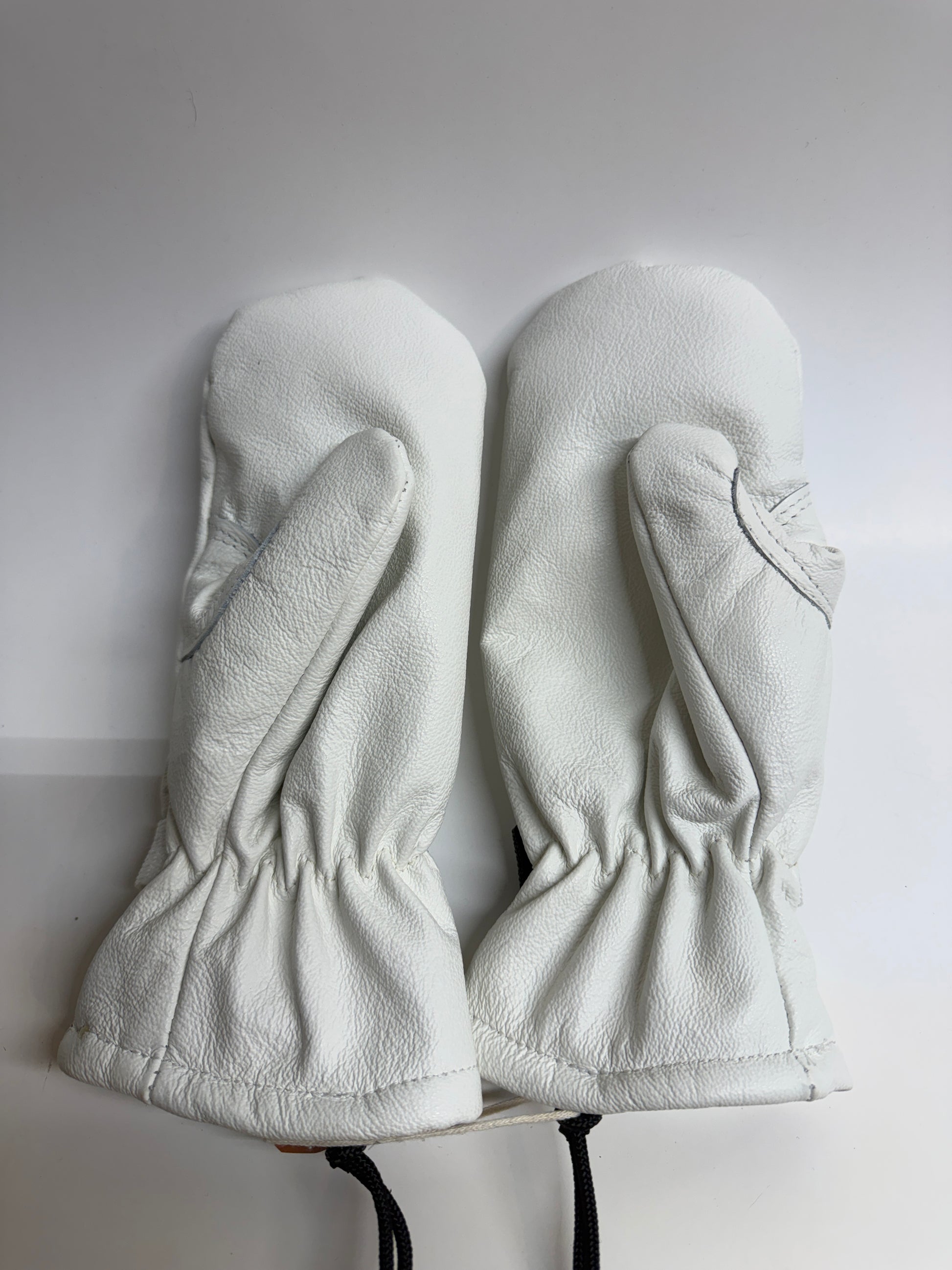 Mittens Made from upholstery leather scrap fabric. All white colored. Extra durable, fleece lined to keep you warm and one of a kind! Size M